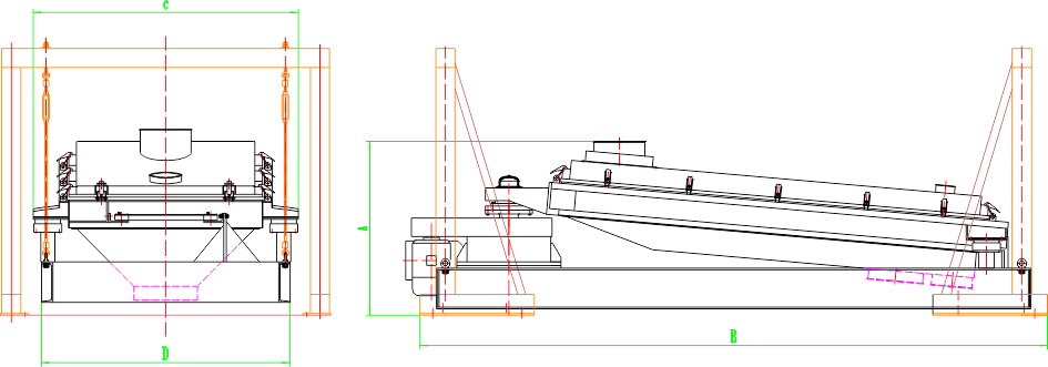 型 号 | 筛网层数 | 筛面规格 | 筛箱 | 电机功率 | A | B | C | D | |