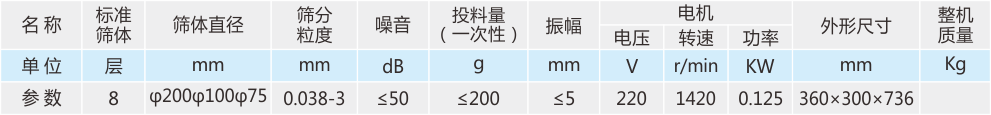 采用专用动力发生器,产生高频振动,**筛滤样品;标准筛体,确保样品分析高精度;电子延时器,可根据需要设定同种物料同等筛分时间、保证样品的分析数据统一性,以便对产品质量做出准确判断。
